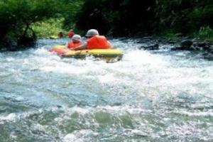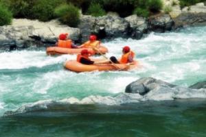 榴花洞漂流河道可谓湖南最长,漂程达到2个小时。全程落差128米,弯道19个。河道两岸矗立群山,遍布奇花,清澈的水流中可见优柔水草,怪